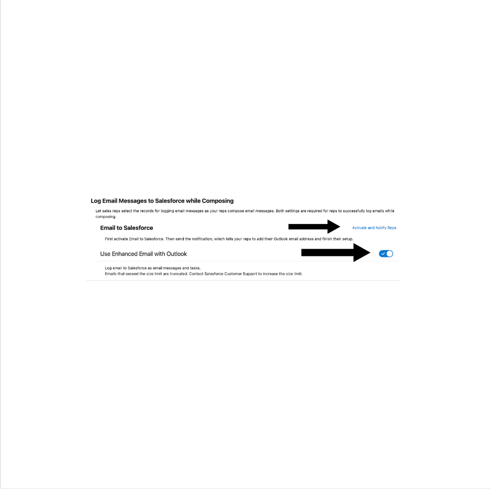 Additionally, enable the "Use Enhanced Email with Outlook" option. This allows Sales Reps to log emails directly from Outlook, streamlining the process for seamless communication tracking.