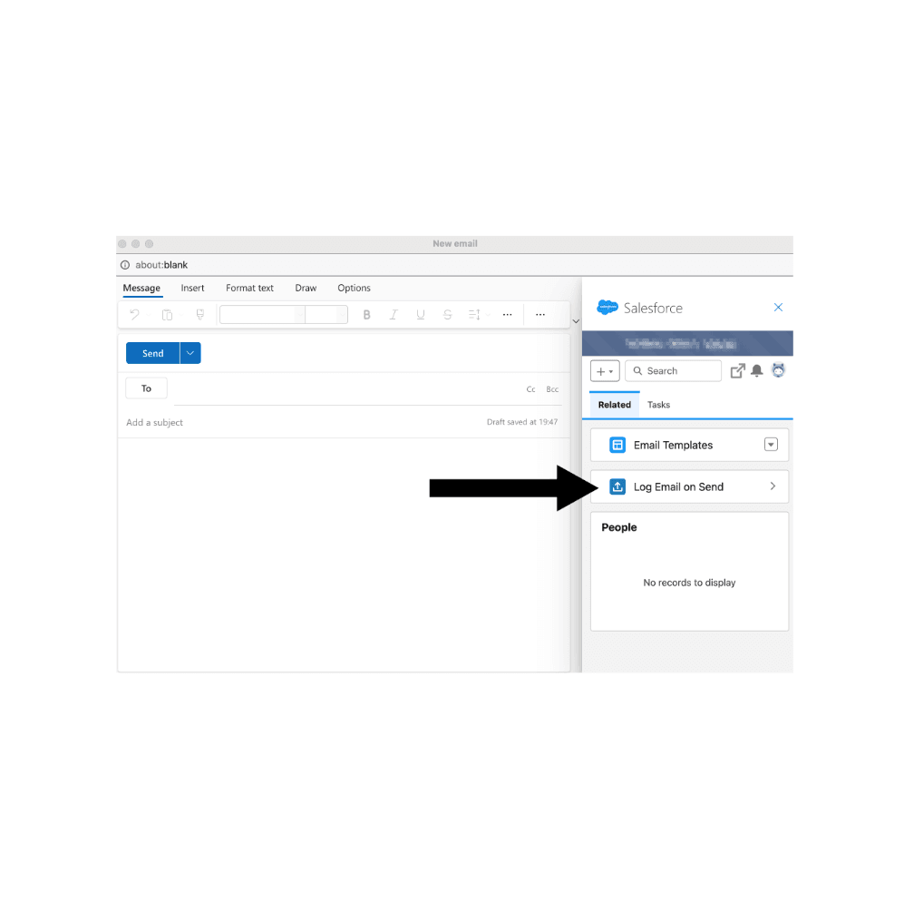 When prompted, confirm the connection, and you will be returned to your Outlook email. On left side panel, you will see that you are now connected to your Salesforce environment via Outlook. Now your Sales reps can log email and tasks, as they compose email messages. Congratulations!